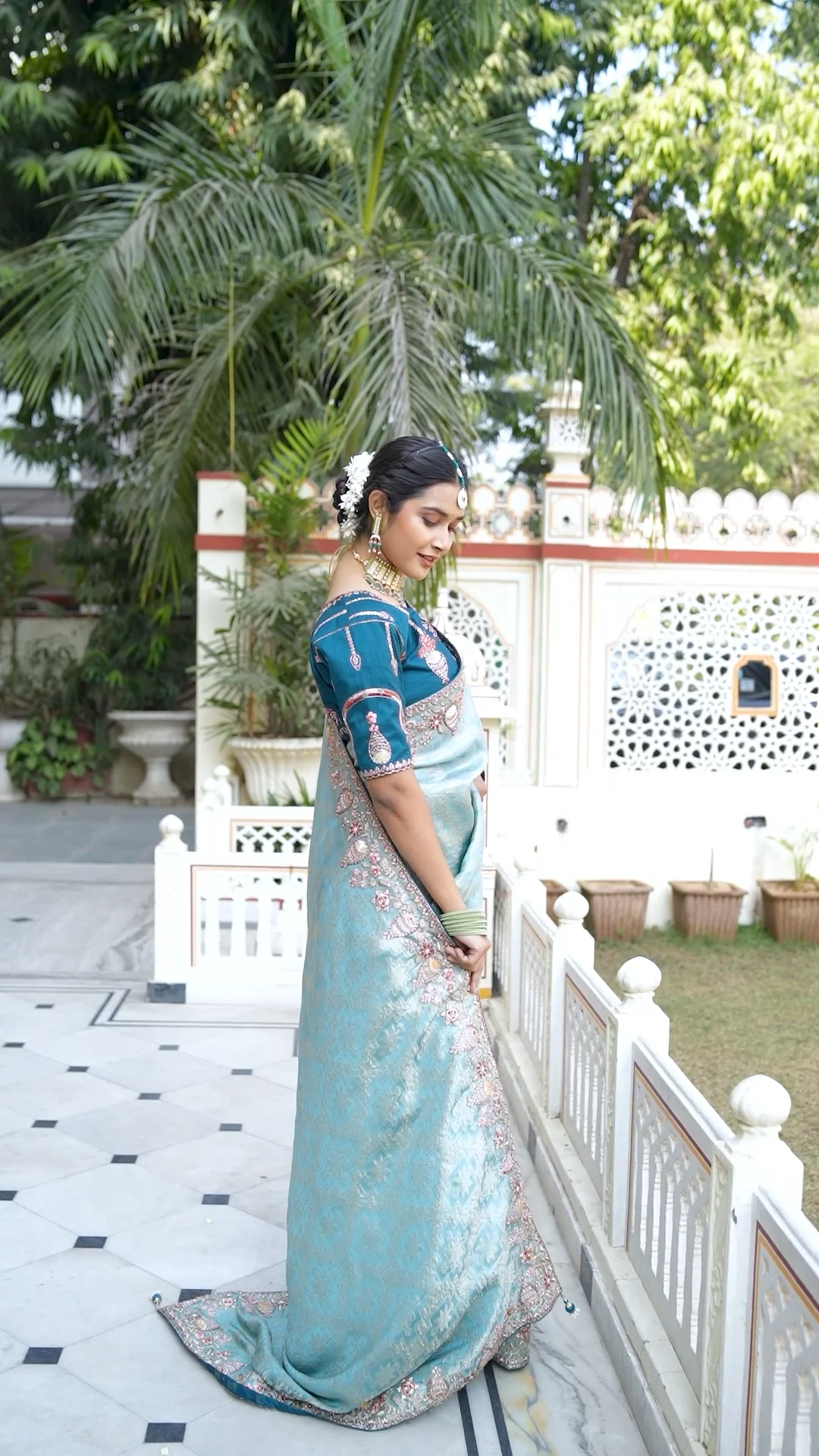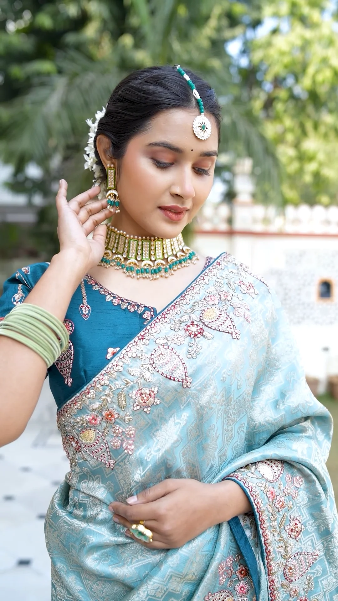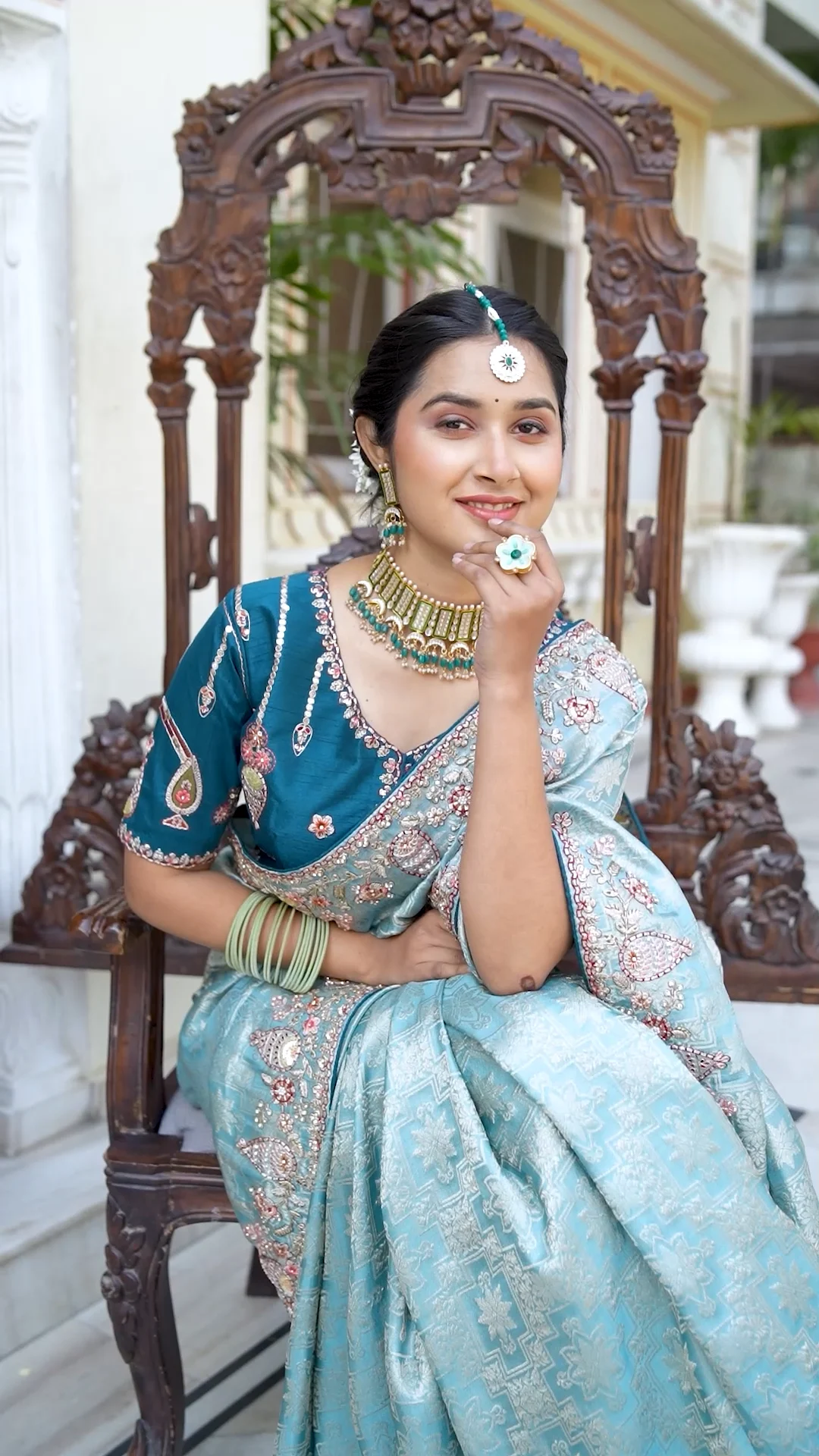 CASUAL LIGHT BLUE SAREE WITH EMBRIODERY WORK