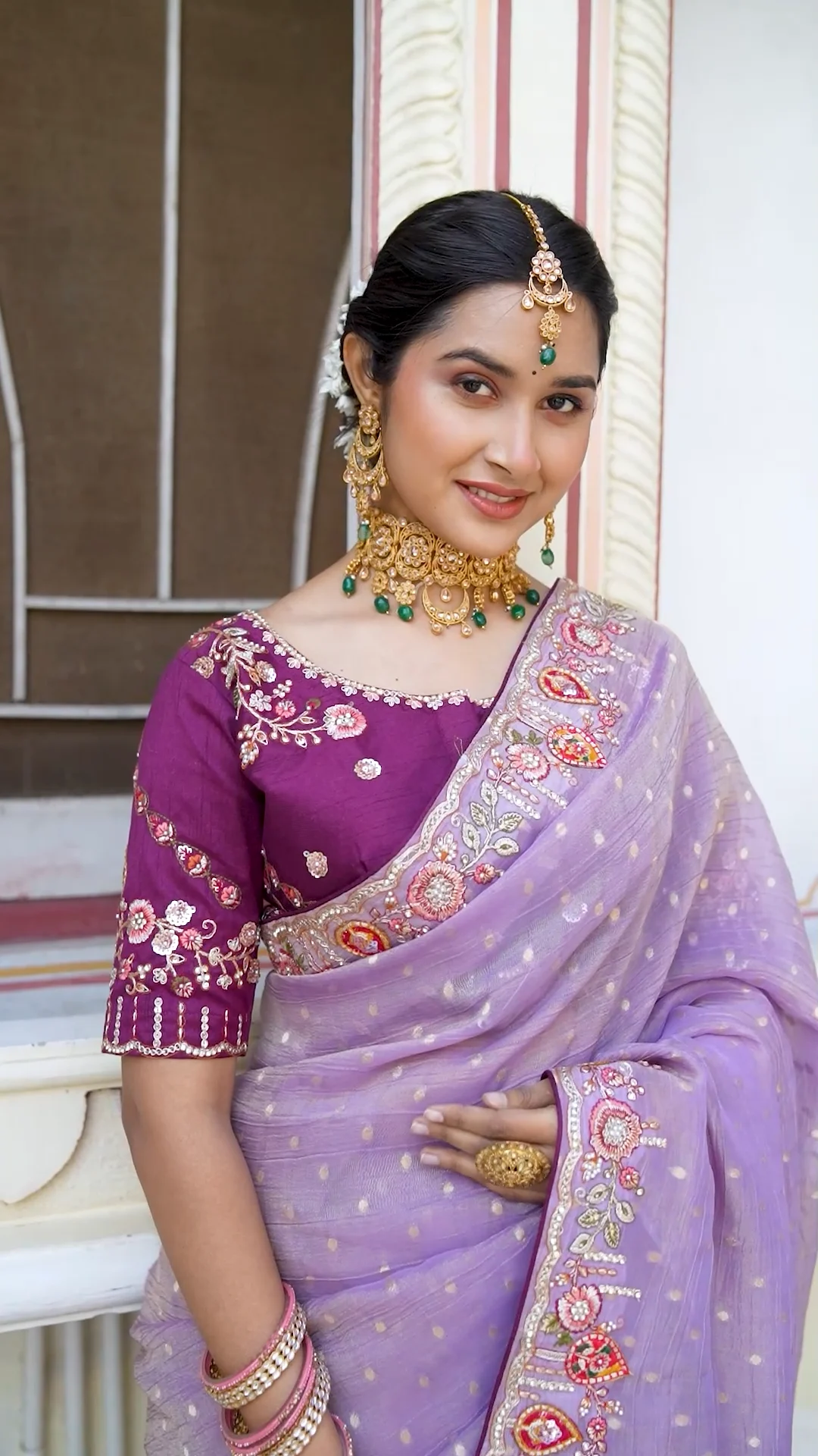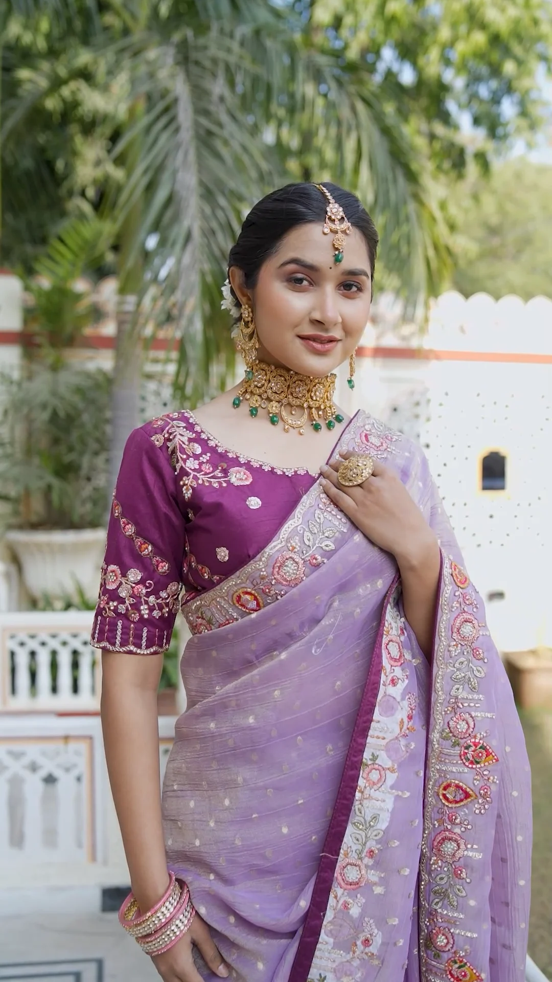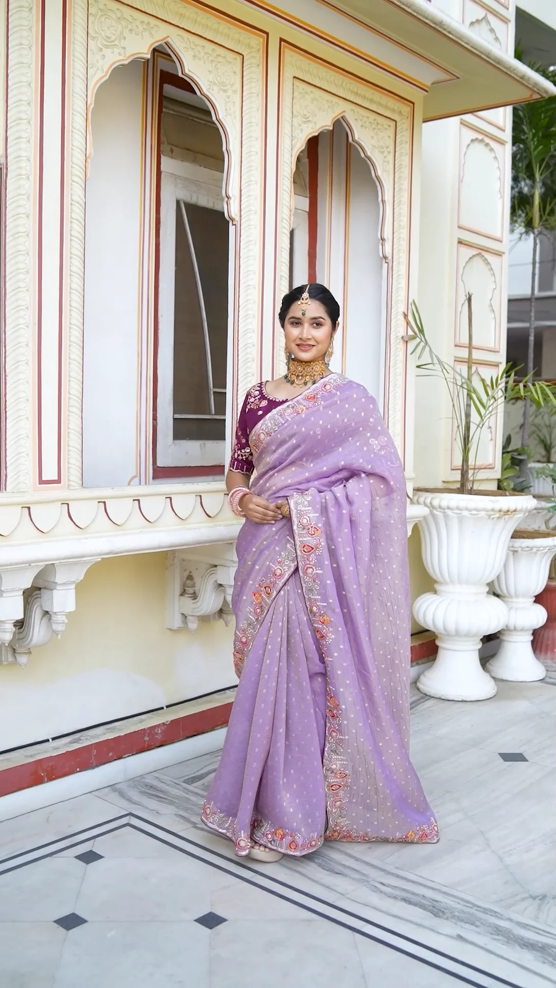 Be the first to review “Elegant Light Purple Embroidered Festive Saree”