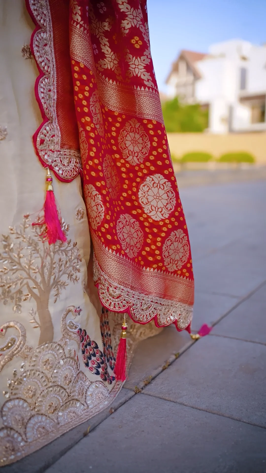 Ivory Viscose Lehenga with Red Banarasi Dupatta