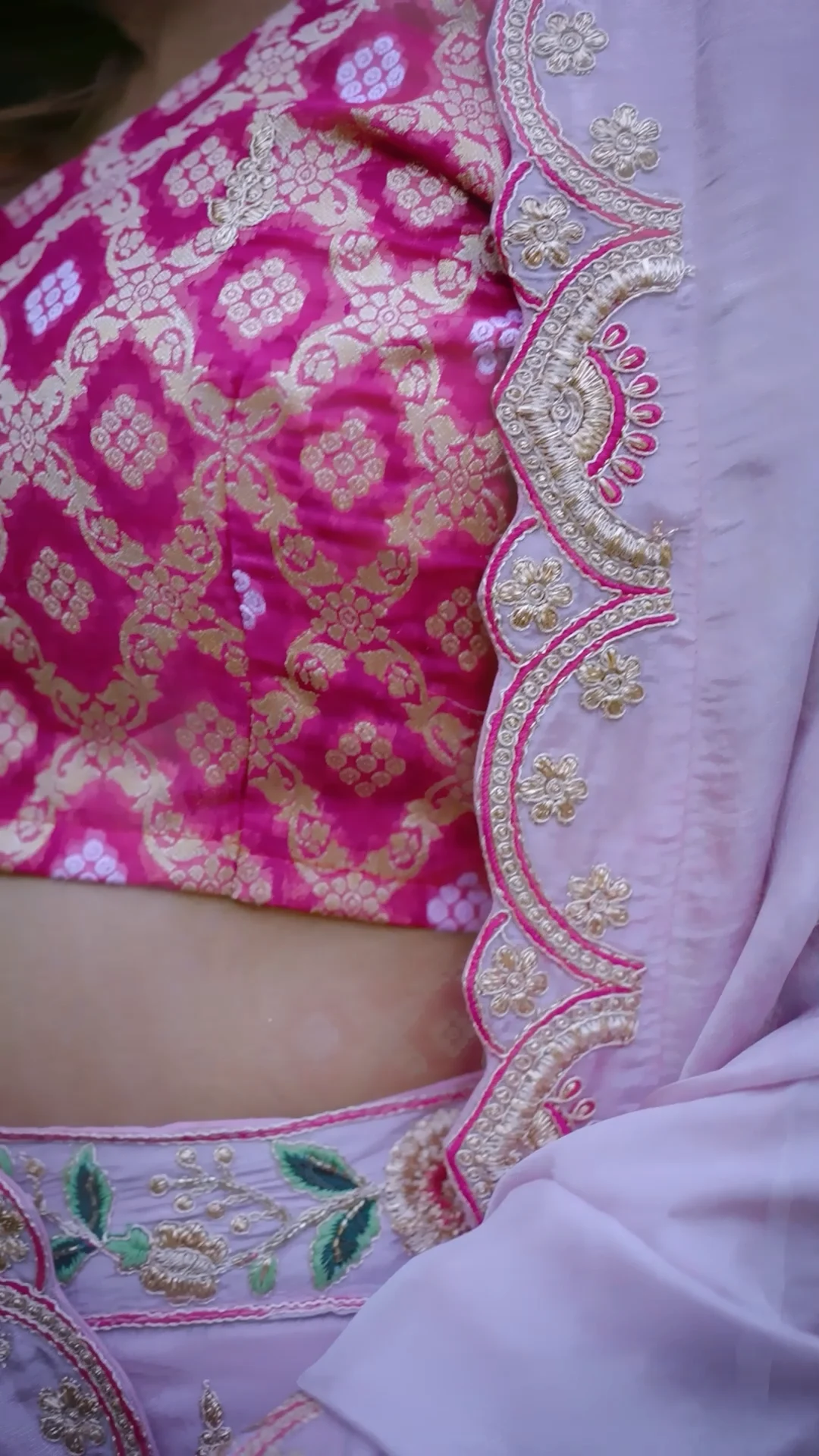 Product Name Lavender Viscose Lehenga with Pink Banarasi Blouse & Embroidered Dupatta