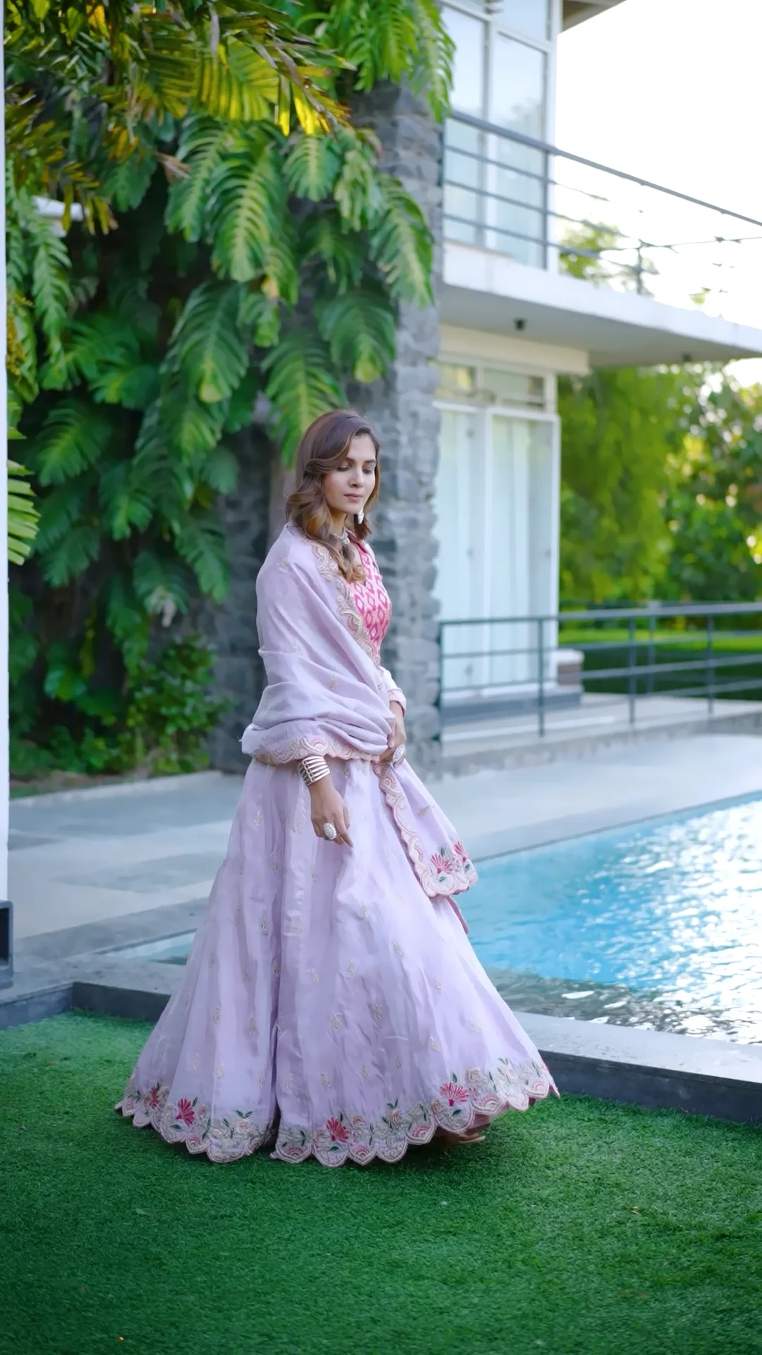 Be the first to review “Lavender Viscose Lehenga with Pink Banarasi Blouse and Embroidered Dupatta”