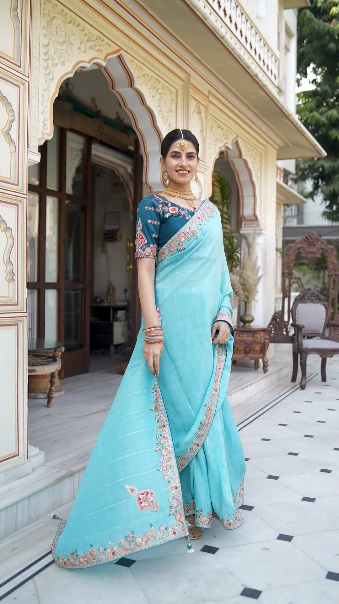 LIGHT BLUE SAREE WITH EMBROIDERY WORK
