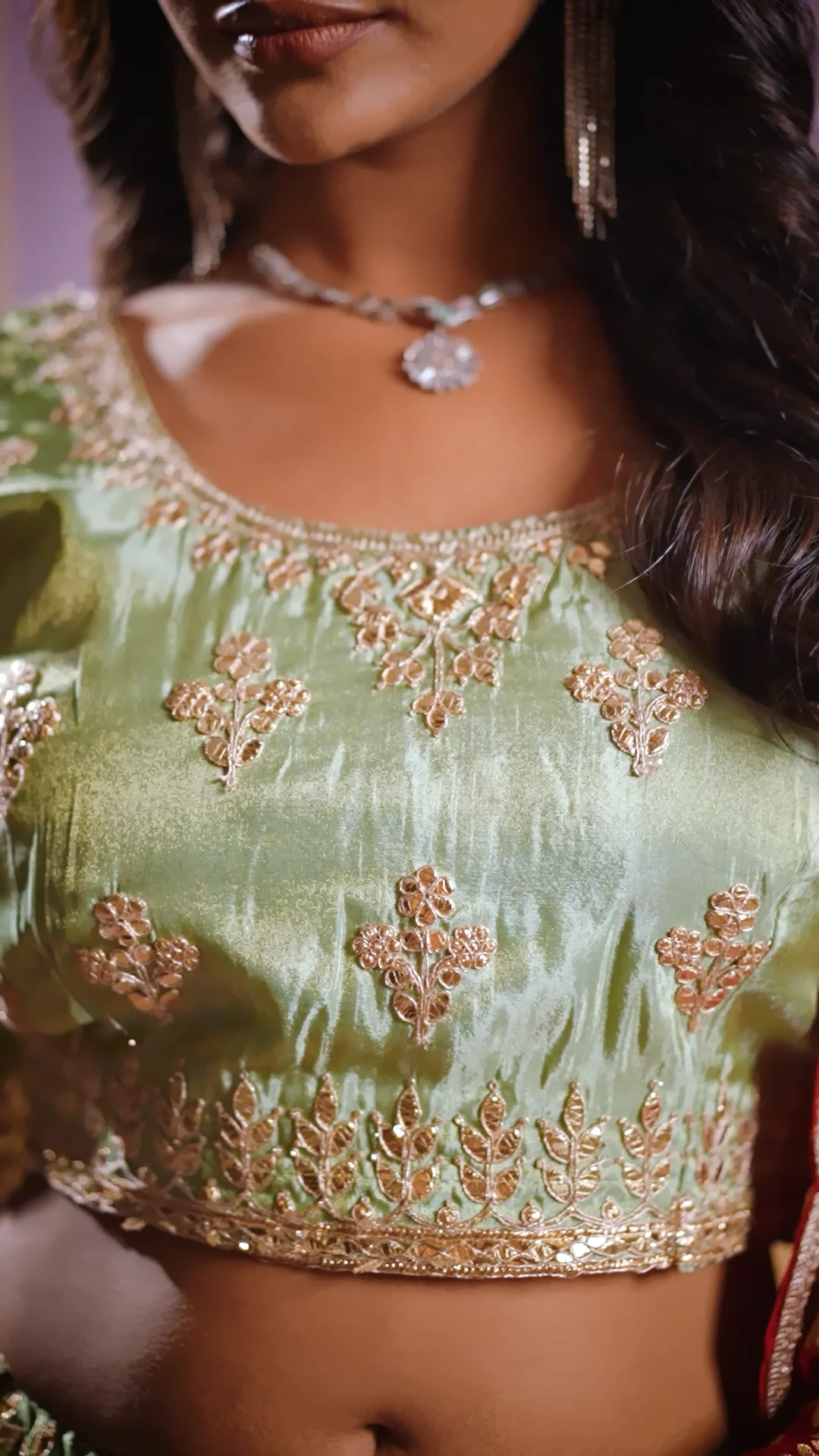 Mint Green Viscose Lehenga with Red Banarasi Dupatta