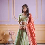 Be the first to review “Mint Green Viscose Lehenga with Red Banarasi Dupatta”