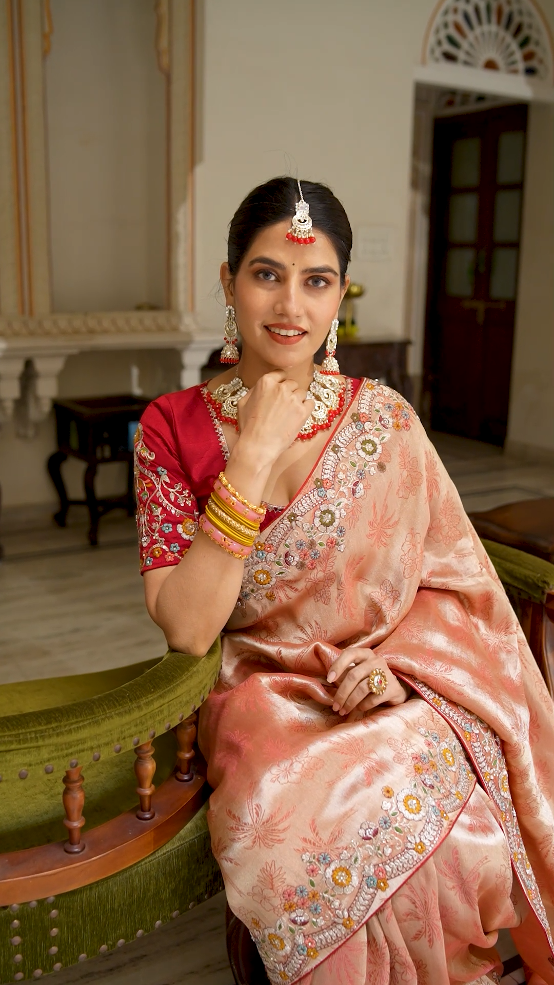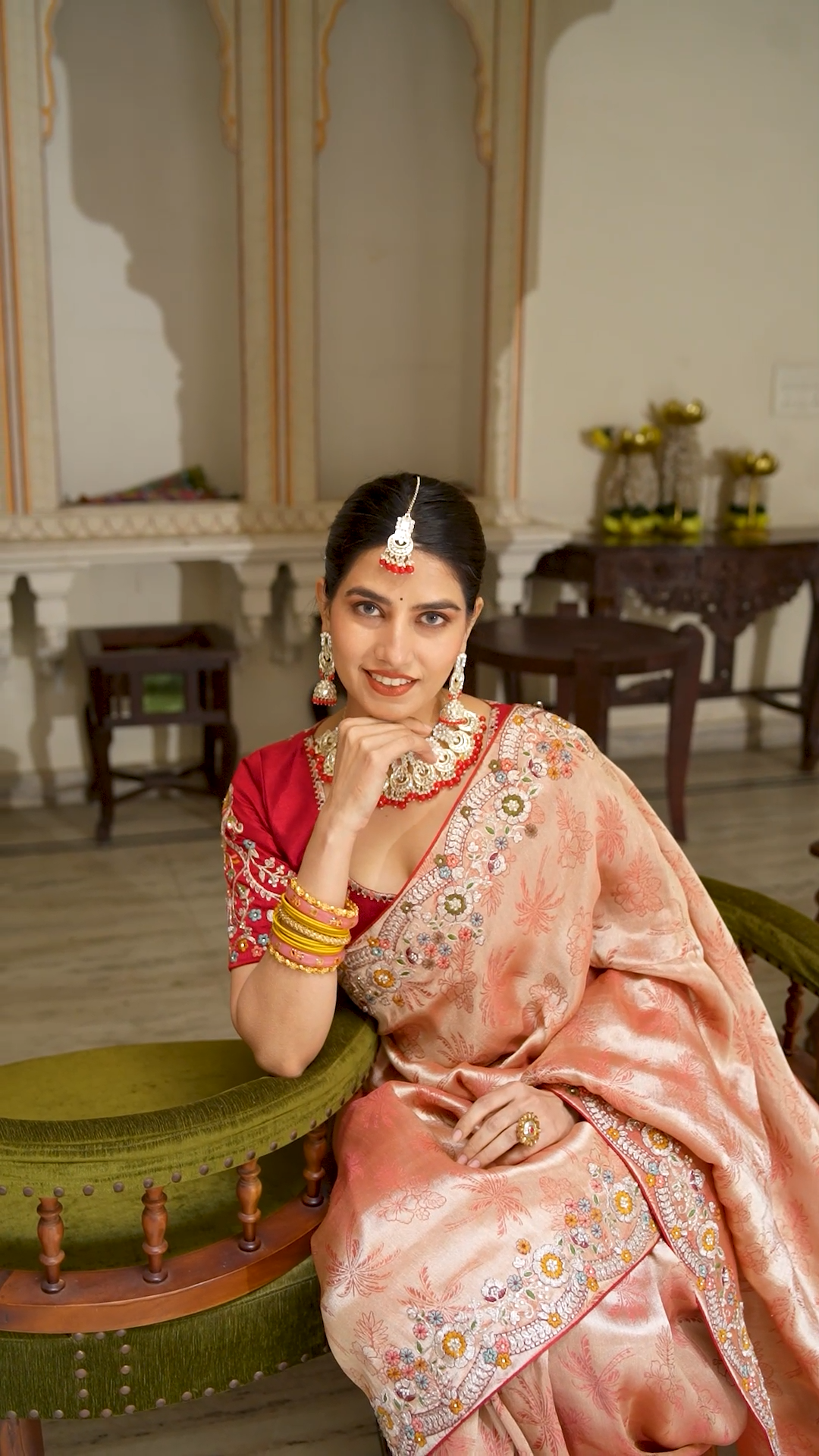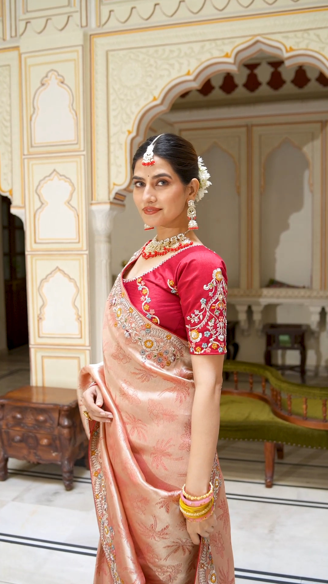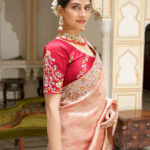Soft Pink Peach Heavy Embroidery Saree for Wedding